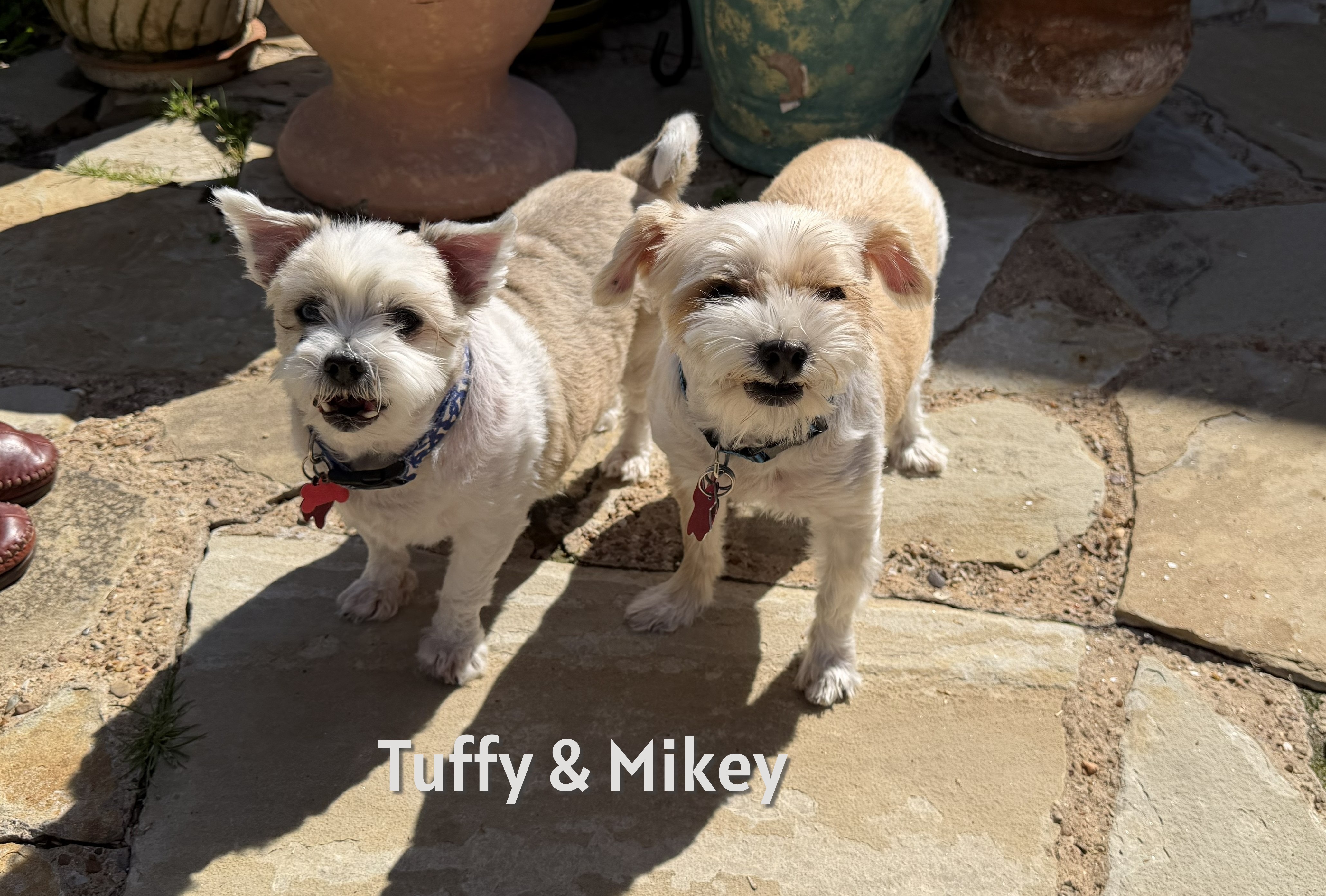 Both boys are about 8 years and are in great health—though Tuffy is on a tiny weight‑loss journey to drop a pound or two. And what a transformation after their recent grooming appointments — suddenly soft, shiny, and looking like two brand‑new boys.