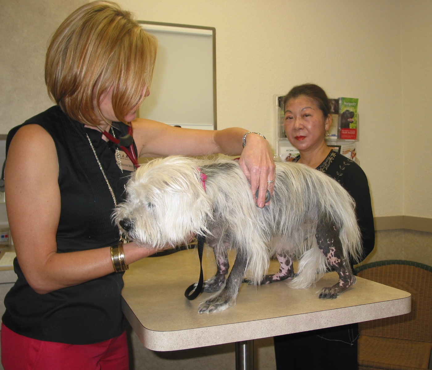 We have great news about our special Hope. She had a vet checkup this past week and she is looking fabulous. She received her last set of vaccinations and can now get a grooming. She is still a little sensitive when being picked up, but her foster mum is working hard to get her used to it. It has been confirmed that with all the prior ear infections not being treated she is probably deaf. But she is getting along great in her foster home. She weighs 25 pounds and will be getting a dental and a benign cyst on her belly removed in the next couple of weeks.