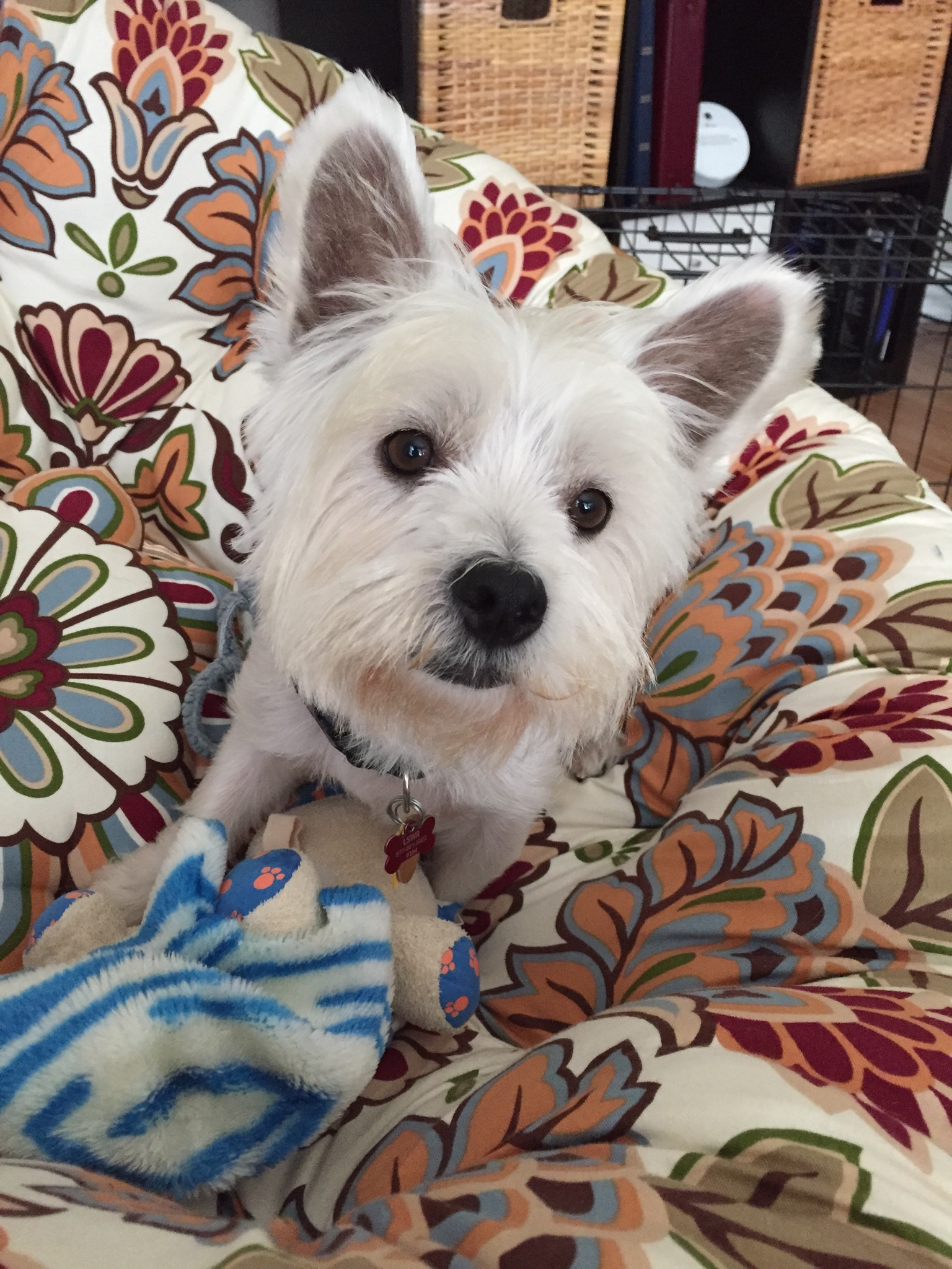 Payton, a 5 year old male Westie, has been in foster care at Lone Star Westie Rescue since late December. He came in with two torn ACL ligaments in his hind legs. He had TPLO (tibial-plateau-leveling osteotomy) surgery on Monday on his right knee. He spent the night and was supposed to be released on Tuesday. His foster mom went to pick him up and when Payton was getting ready to be released, he suffered a seizure and was re-hospitalized. In the interim, tests proved he has Addison’s disease so they quickly started addressing that issue. His prior blood work from his dental in December and pre-anesthetic blood work had all come back normal so the Addison’s diagnosis was a surprise.