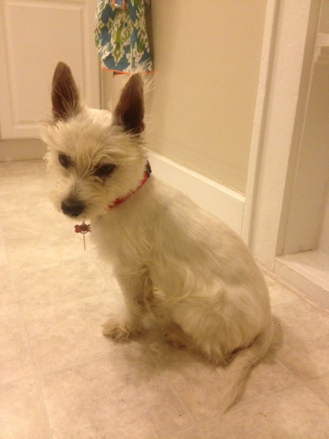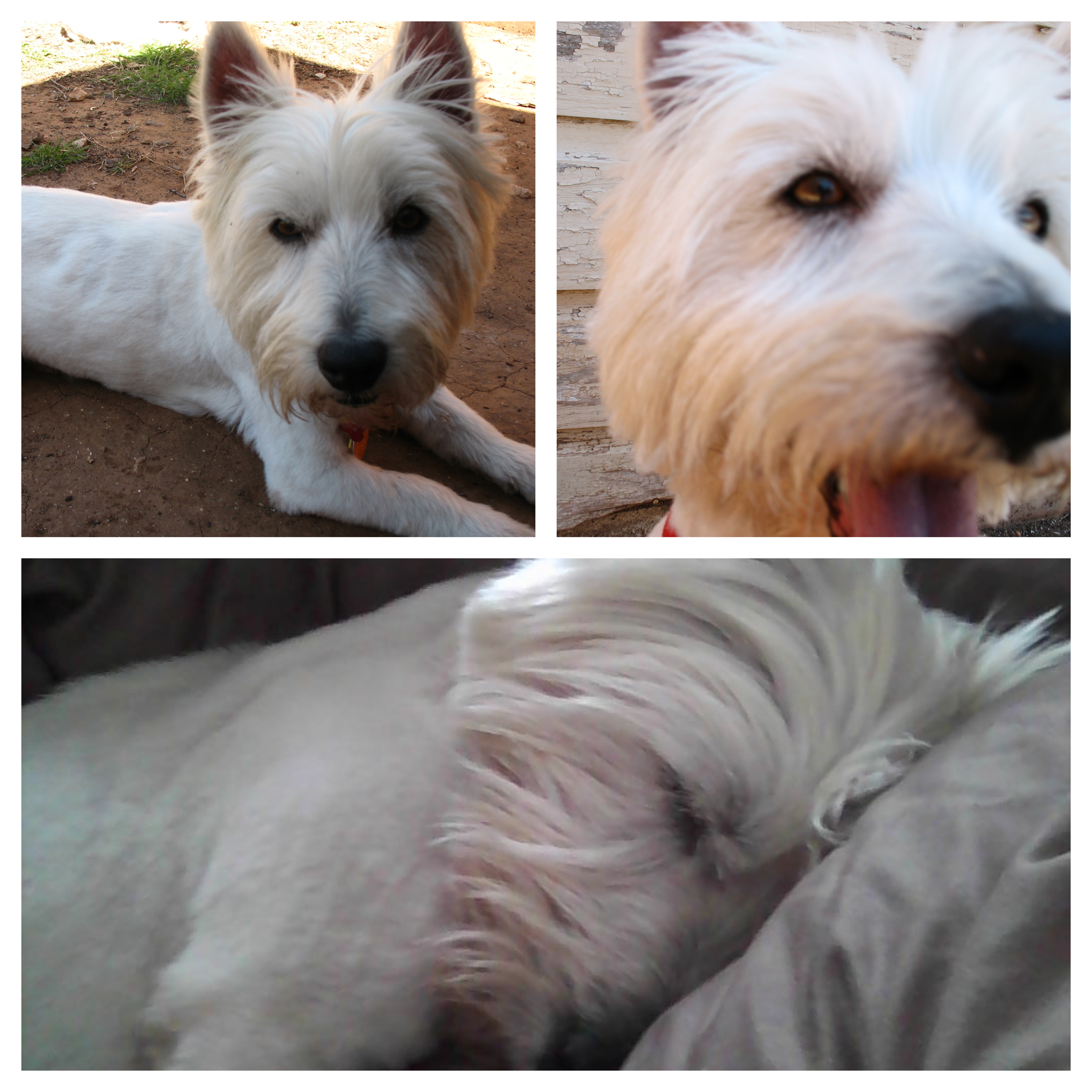 We headed straight to the vet where I was hospitalized for severe skin, ear and eye infections and malnourishment. I was frightened and confused but the staff did their best to reassure me that everything would be okay. I am estimated to be 6 years old but frail, tired, and my bones are showing through. I move very slowly right now, but I’m not in any rush. I know it will take some time to become a new dog. I have a shining spirit and a clear will to survive.