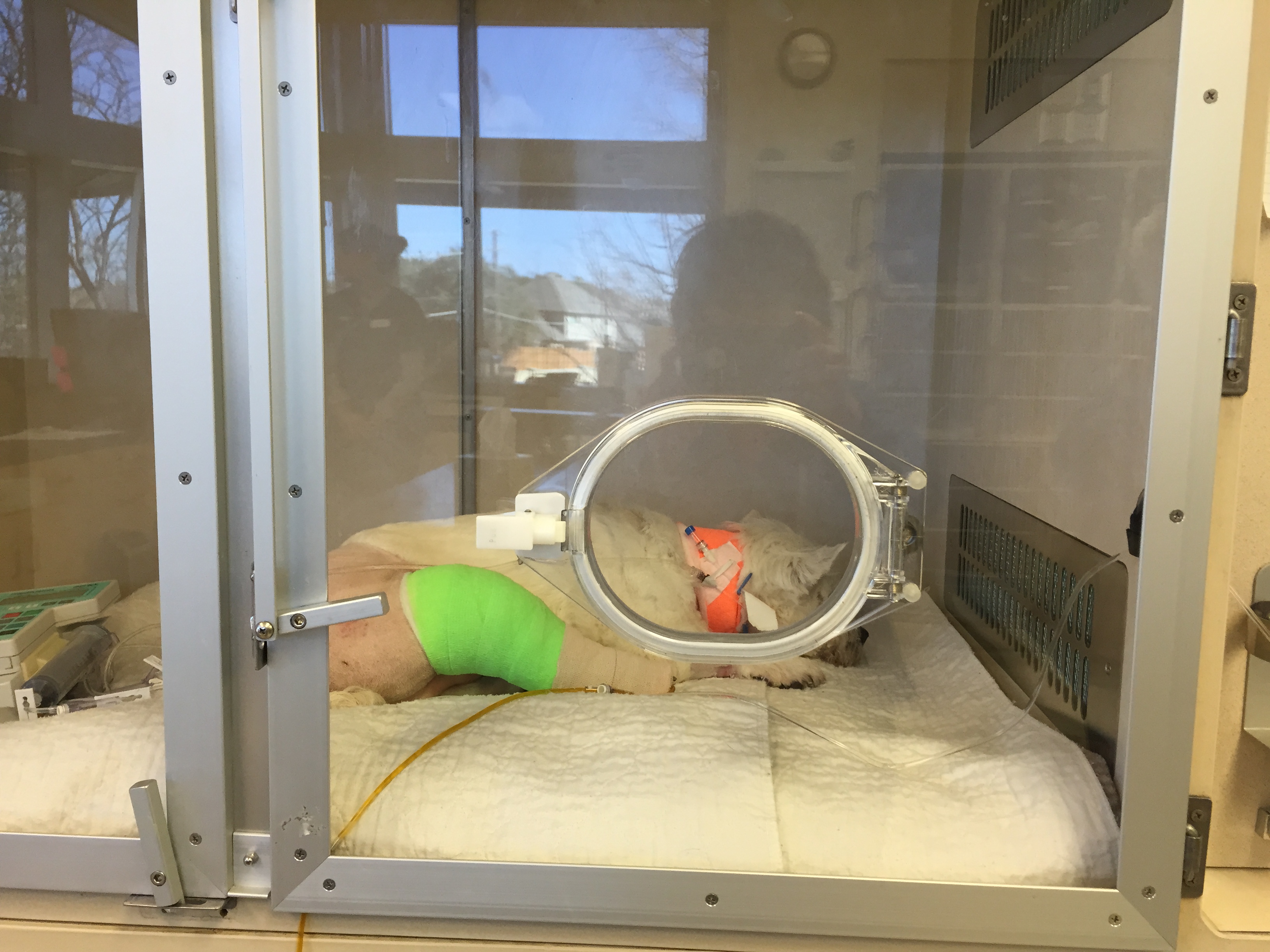 The two days following his re-hospitalization, The skin around Payton’s TPLO incision became necrotic and is too graphic for details. Payton’s foster mom has been visiting him daily and the LSWR directors have met with his doctors and been told that Payton’s diagnosis is not good. His doctors agreed that we should know by Monday to see how to proceed as well as thru the weekend. He is in ICU and the facility is staffed 24/7. He is on IV’s and pain MEDs so his doctors are comfortable they are managing the pain. Payton is lethargic and weak, but does raise his head when he hears his foster mom’s voice. His surgeon and doctors are doing everything they can to save him.