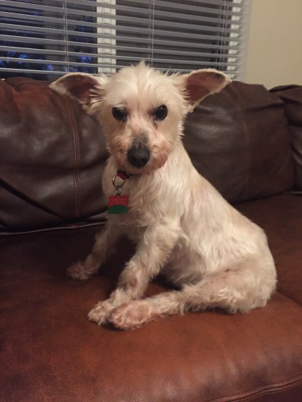 Payton, a 5 year old male Westie, has been in foster care at Lone Star Westie Rescue since late December. He came in with two torn ACL ligaments in his hind legs. He had TPLO (tibial-plateau-leveling osteotomy) surgery on Monday on his right knee. He spent the night and was supposed to be released on Tuesday. His foster mom went to pick him up and when Payton was getting ready to be released, he suffered a seizure and was re-hospitalized. In the interim, tests proved he has Addison’s disease so they quickly started addressing that issue. His prior blood work from his dental in December and pre-anesthetic blood work had all come back normal so the Addison’s diagnosis was a surprise.