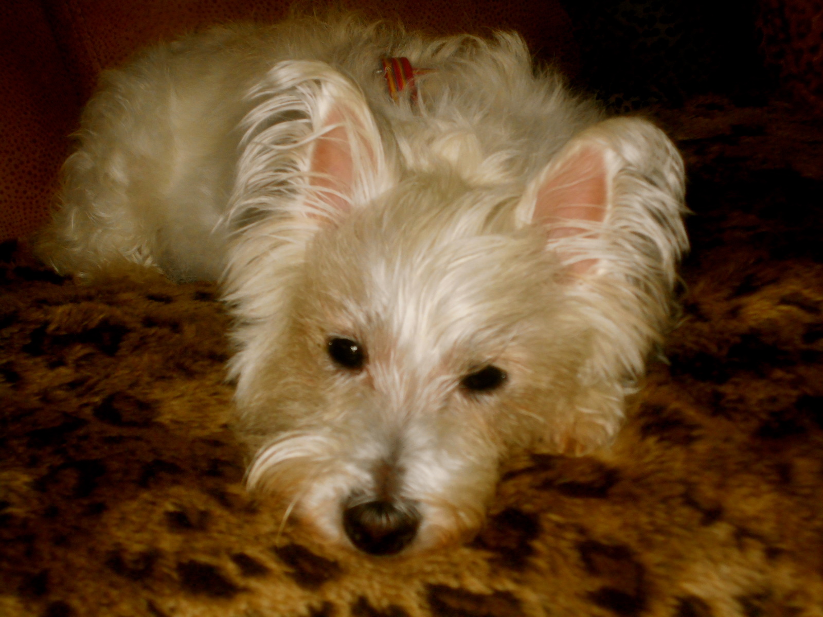 I am about 2 years old, a Westie imposter and a whopping 7 lbs! I need to be fattened up a bit, but that doesn’t slow me down! I have a lot of energy, especially in the morning after I wake up.